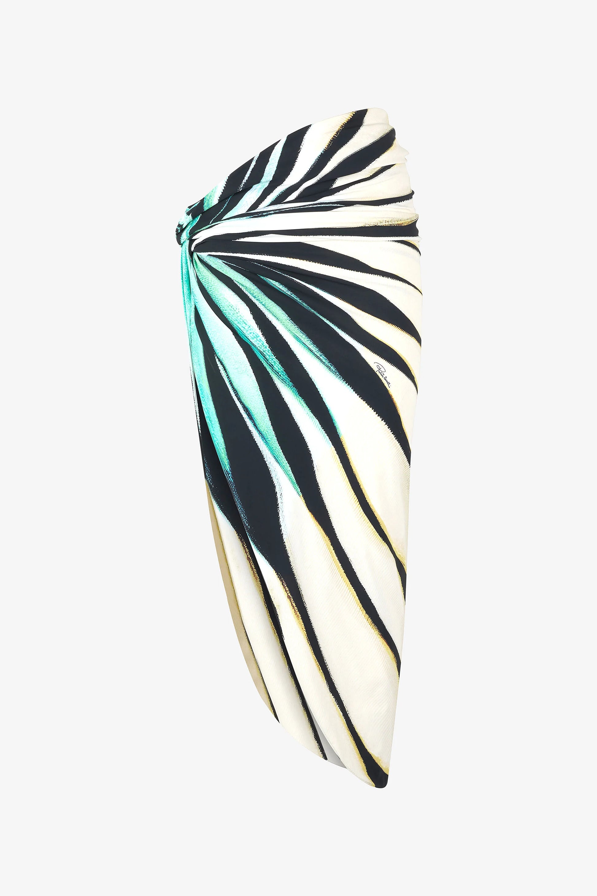The Roberto Cavalli Pareo Skirt Ray of Sea features a stunning design with vibrant, flowing colors that resemble ocean waves, making it perfect for beachside outings or summer gatherings. Crafted from lightweight fabric, it offers both comfort and style, while its versatile design allows for various styling options. This statement piece is ideal for those looking to add a touch of luxury to their warm-weather wardrobe.