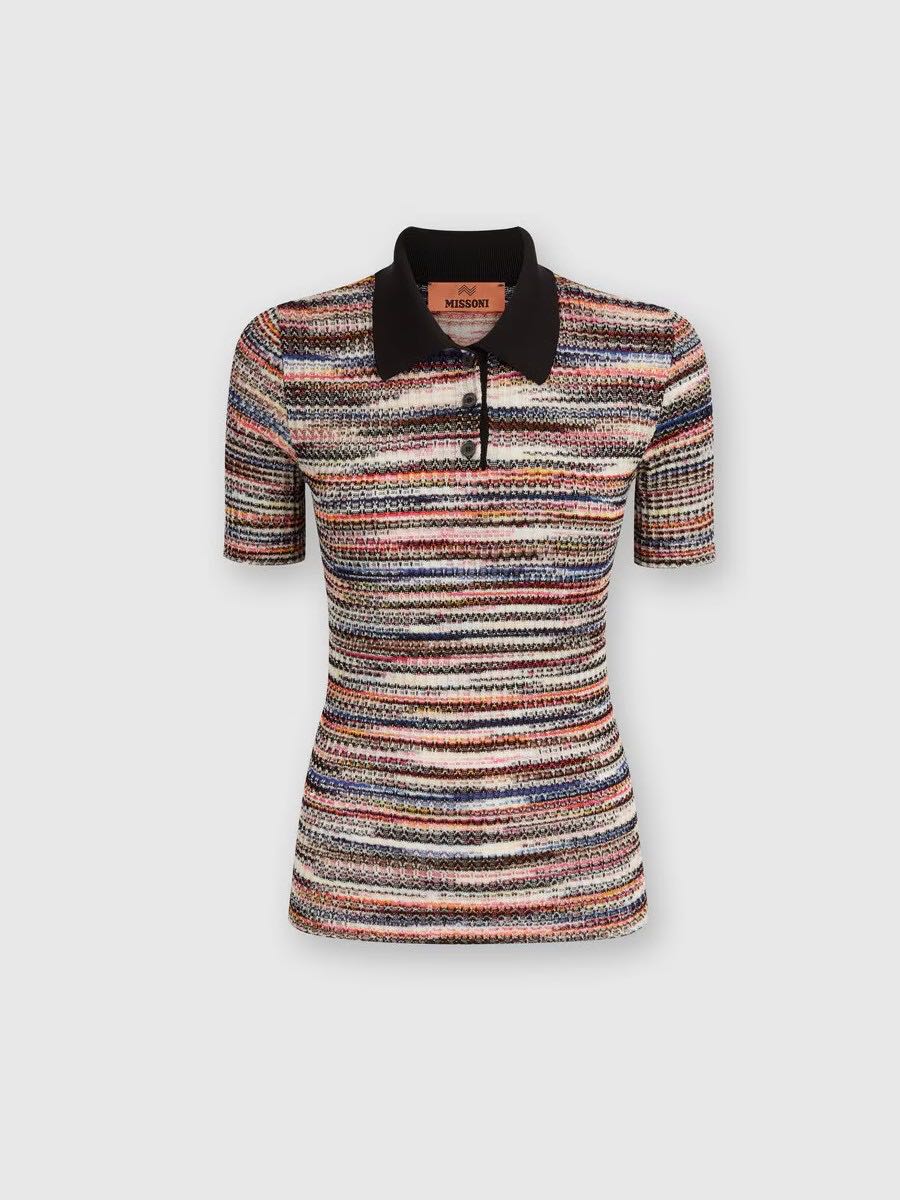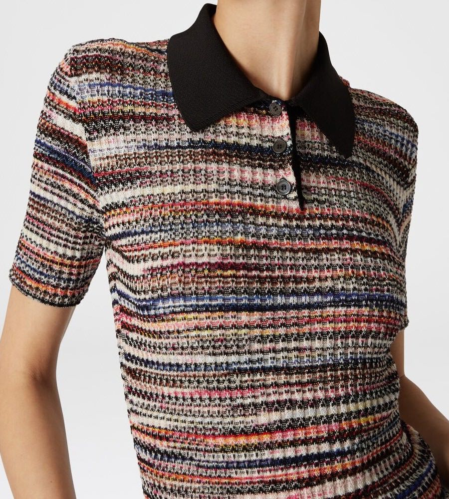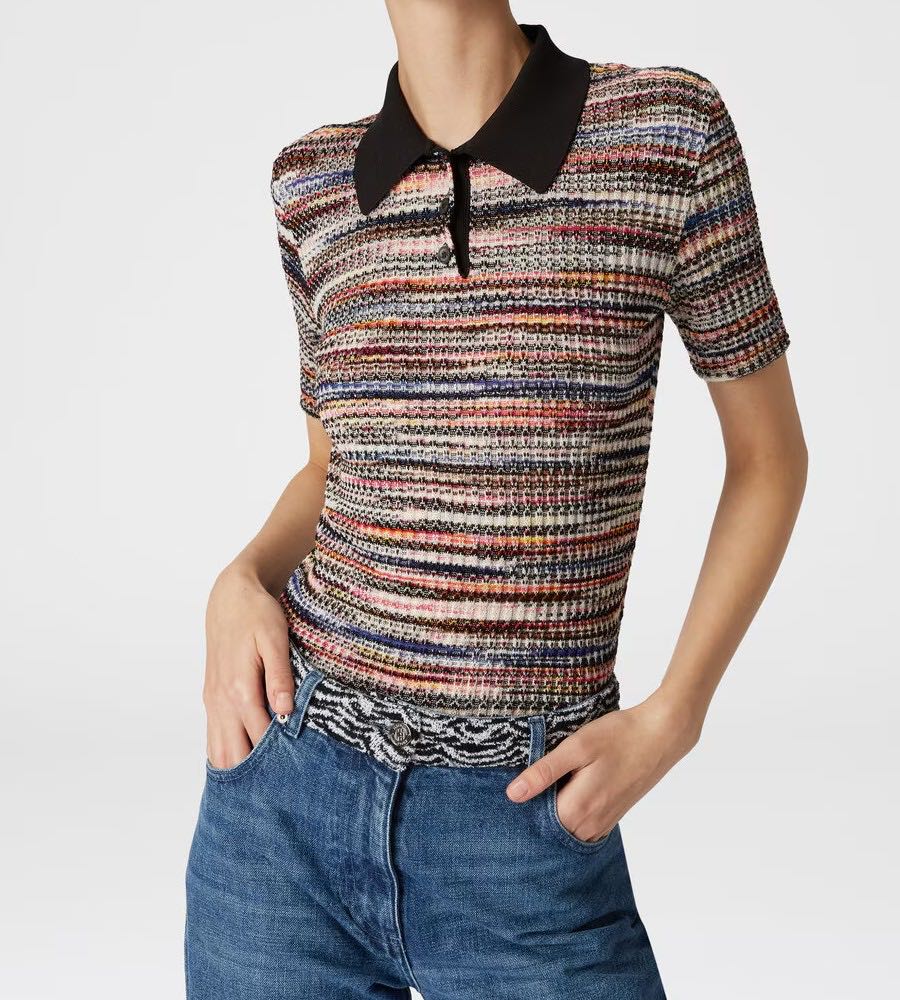Elevate your wardrobe with the Missoni shortsleeved canalé polo, featuring a vibrant striped design that embodies contemporary elegance. Made with premium fabric, this stylish piece combines comfort and breathability, making it perfect for any casual or semi-formal occasion. The classic collar and button placket add a touch of sophistication, while the unique texture enhances its visual appeal.